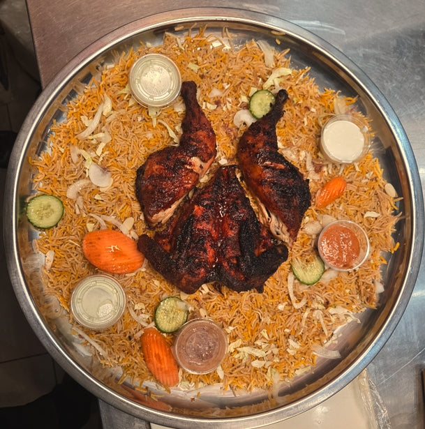 Full Chicken Mandi Platter - BBQ chicken over flavourful mandi rice